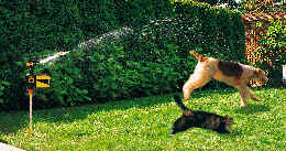 All it takes is a couple cups of water from the fast acting Scarecrow for cats, dogs, deer, rabbits, raccoons and most other animals to high-tail it!
