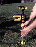 - Just hook up to your garden hose, plug in the battery and point it over the area to be protected. It's that easy.